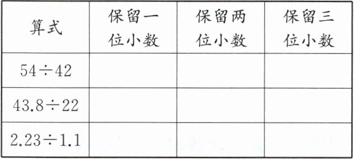 |算式|保留一位小数|保留两位小数|保留三位小数|