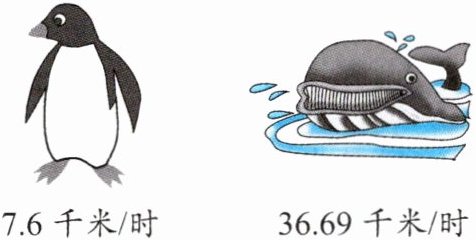 (1)鲸的游动速度约是企鹅的多少倍?(得数保留整数。)