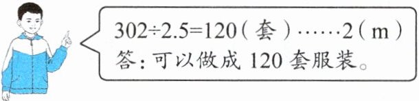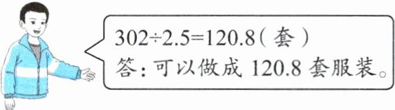 探究:光华制衣厂制作一套服装需要2.5m的布料,现有布料302m,可以做成多少套服装?