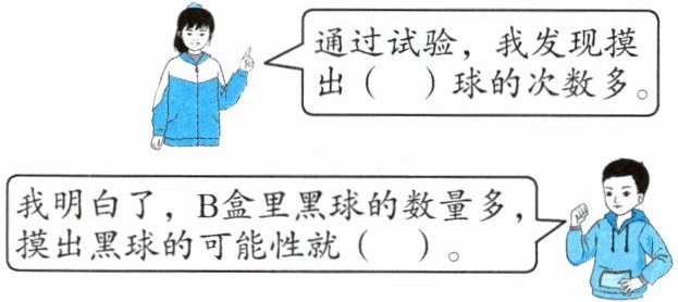 1. 我猜:A盒里一定能摸出黑球,不可能摸出白球;B盒里可能摸出白球,也可能摸出黑球。