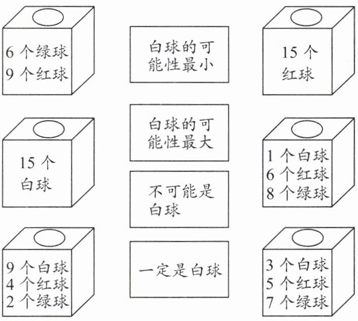 1. 从下面的六个箱子里分别摸出一个球,结果是哪个?用线连一连。