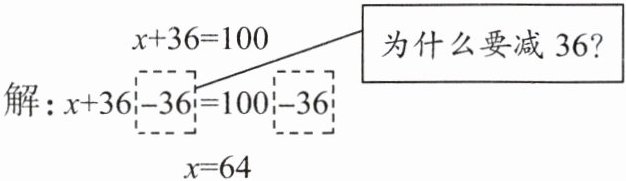 1.减 36 后,方程左边就只剩下 x 了,方程右边的值就是 x 的值。