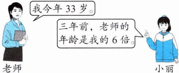 (2)解:设小丽三年前x岁。6x+3=33 x=5 5+3=8(岁)