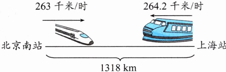 2. 上午 11 时两列高速列车分别从北京南站和上海站开出,相向而行。两车何时可以相遇?