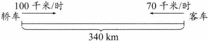 探究:两地相距 340 km,两辆汽车同时从两地相向开出,轿车每小时行驶 100 km,客车每小时行驶 70 km,经过几小时两车相遇?