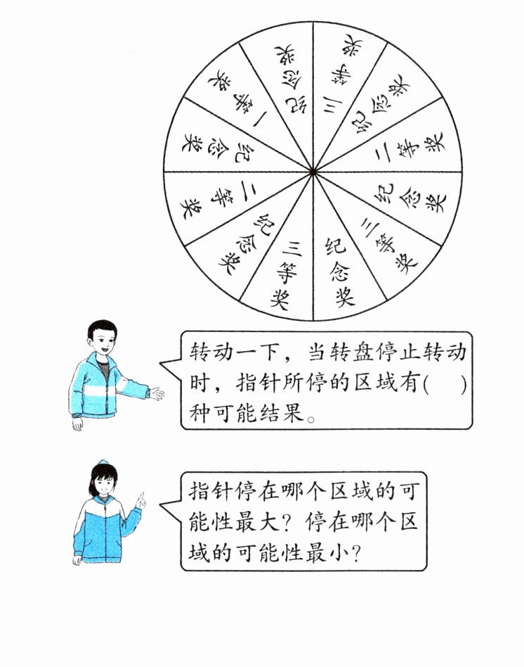 综上,答案依次为:4;指针停在纪念奖区域的可能性最大,停在一等奖区域的可能性最小。