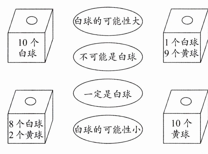 四、从盒子里摸出一个球,结果会是什么?连一连。(12分)