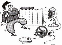 9. 小文在“生活中的科学”展区看到一幅宣传冬季安全用电的漫画,没有看明白,请小语为她讲解。请你将小语的讲解补充完整。