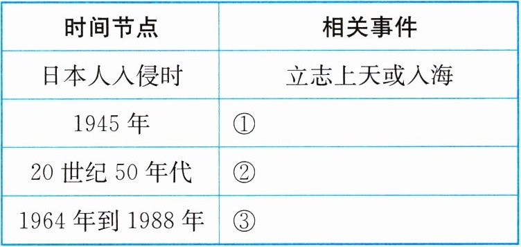 6. 本文按时间先后的顺序叙述黄旭华的事迹。根据选文完成下表。(3分)