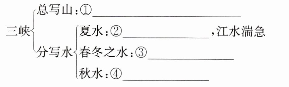 ①山高岭连,遮天蔽日 ②水势浩大 ③清幽秀丽 ④肃杀凄清