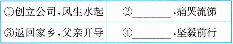 |①创立公司,风生水起|②______,痛哭流涕|