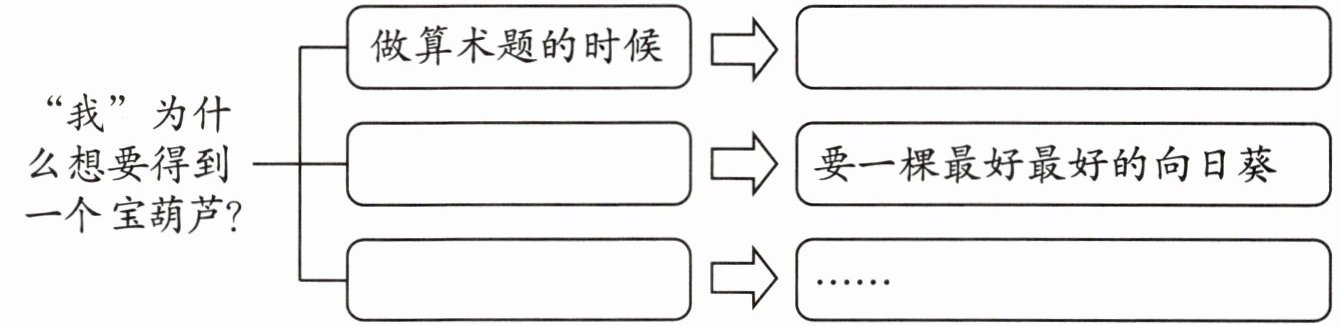 2. “我”为什么想要得到一个宝葫芦?想一想,照样子填写图表。