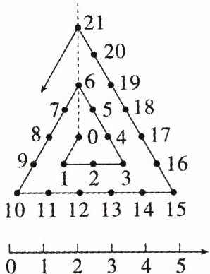 4. 把一根起点为0的数轴弯折成如图所示的样子,虚线最下面第1个数字是0,往上第2个数字是6,第3个数字是21……则第23个数字是______.