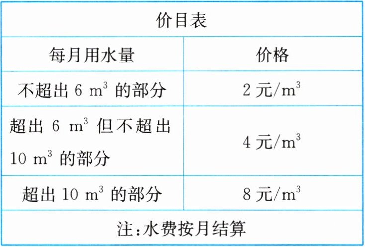 (2)若某户居民 3 月份用水$a m^{3}$(其中$6 < a < 10$),则应缴水费______元(用含$a$的代数式表示并化简);
