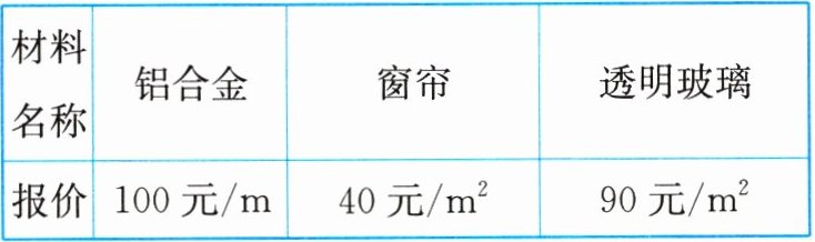 (3)某公司需要制作 20 扇这样的窗户,并按照图(2)的方式安装窗帘,厂家报价如表,当$a = 1$时,该公司的总花费为多少元?