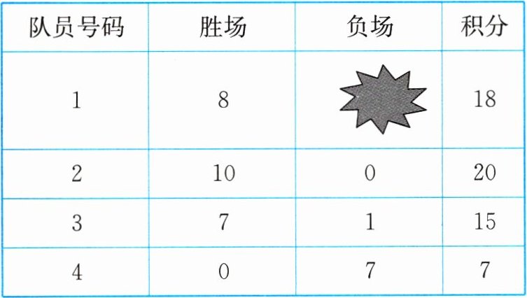 (1)由题中表格,得胜一场得20÷10=2(分),负一场得7÷7=1(分).设在第一天的比赛中,1号队员负了x场,则8×2+x=18,解得x=2.答:1号队员在第一天的比赛中负2场.