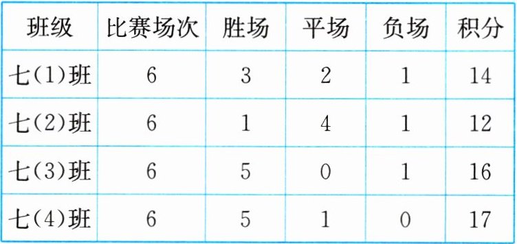 (4)班少17-16=1(分),所以平一场比负一场多得1分.