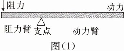 公元前 3 世纪,古希腊数学家阿基米德发现:若杠杆上的两物体到支点的距离与其质量成反比,则杠杆平衡. 后来人们把它归纳为“杠杆原理”,通俗地说,杠杆原理为阻力×阻力臂= 动力×动力臂.[如图(1)所示]