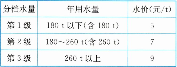 (3)因为用水量为260 t,需缴水费180×5+80×7=1 460(元),