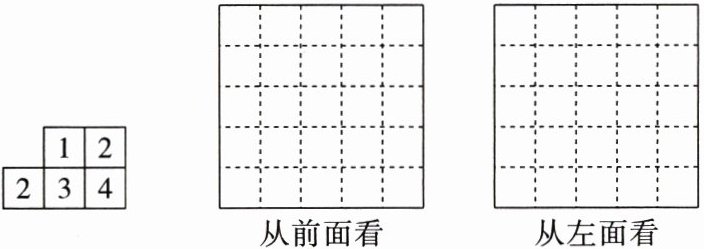 2. 一个几何体由一些大小相同的小正方体搭建而成,如图所示的是从上面看到的这个几何体的形状,小正方形内的数字表示在该位置的小正方体的个数,请在网格中画出从前面和左面看到的几何体的形状图.