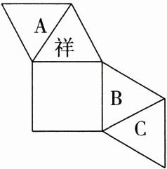 9. (2024·德阳中考)走马灯,又称仙音烛,是中国特色工艺品,常见于除夕、元宵、中秋等节日. 在一次综合实践活动中,一同学用如图所示的纸片,沿折痕折合成一个棱锥形的“走马灯”,正方形做底,侧面有一个三角形面上写了“祥”字,当灯旋转时,正好看到“吉祥如意”的字样,则在 A,B,C 处依次写上的字可以是( )