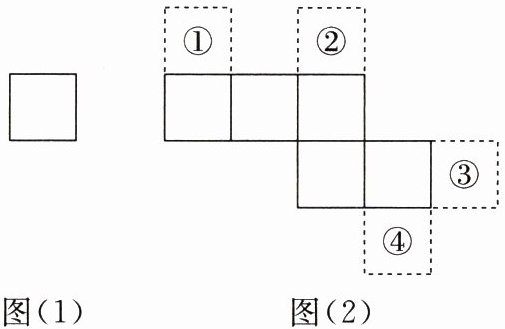 5. 图(1)和图(2)中所有的正方形都完全相同,将图(1)的正方形放在图(2)中的①②③④的某一位置,则使所组成的图形不能围成正方体的位置是( )