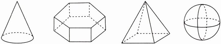 【例2】如图所示,四个几何体分别是圆锥、六棱柱、四棱锥和球。