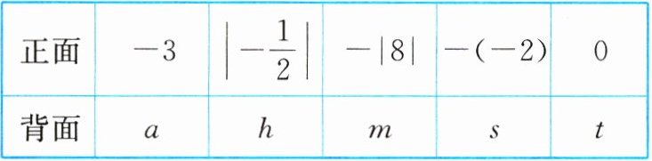 | 正面 | $-3$ | $|-\dfrac{1}{2}|$ | $-|8|$ | $-(-2)$ | 0 |
