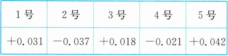 6. 某工厂生产一批精密的零件,要求是$\phi 50_{-0.03}^{+0.04}$($\phi$表示圆形零件的直径,单位是mm),抽查了5个零件,数据如下表,超过规定的记作正数,不足的记作负数.