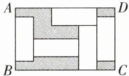 9. 如图所示,在长方形 $ABCD$ 中,放入5个形状大小完全相同的小长方形(空白部分),其中$AB = 7\ cm$,$BC = 11\ cm$,则阴影部分图形的总面积为(