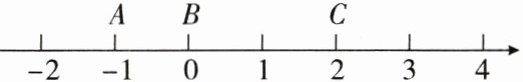 10. 数轴上线段的长度可以由线段端点表示的数进行减法运算得到,如图所示,线段$AB = 0 - (-1)= 1$,线段$BC = 2 - 0 = 2$,线段$AC = 2 - (-1)= 3$.