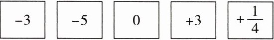 $\boxed{-3}$ $\boxed{-5}$ $\boxed{0}$ $\boxed{+3}$ $\boxed{+\dfrac{1}{4}}$