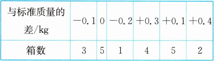 |与标准质量的差/kg| -0.1 | 0 | -0.2 | +0.3 | +0.1 | +0.4 |