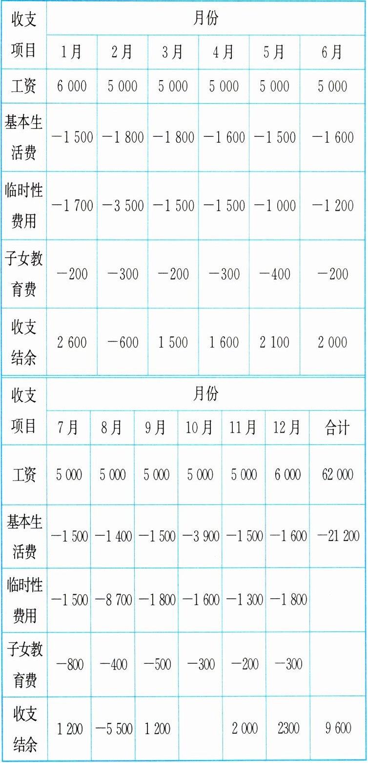 |收支结余|1 200|-5 500|1 200| |2 000|2300|9 600|