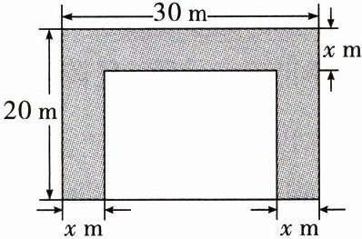 6. 某中学有一块长30m、宽20m的长方形空地,计划在这块空地上划分出部分区域种花。小明同学的设计方案如图所示,其中阴影部分为花带,设花带的宽度为$x$m,则空白部分长方形的面积为______$m^2$。