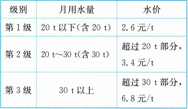 (3) 如果某用户某月用水量为$a$t($20 < a \leq 30$),则该月需交水费______元(用含$a$的代数式表示);