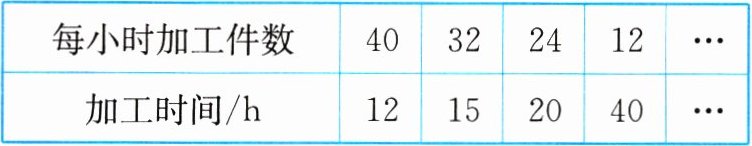 (2)结合表格,得出加工时间随着每小时加工件数的增加而减少(或减少而增加).