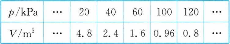 6.(跨学科—物理)物理学的知识告诉我们,气温不变时,某气球内的气压$p(kPa)与气球体积V(m^{3})$是成反比例关系的量,当气球内的气压大于$100kPa$时,气球会发生爆炸。根据下表判断,为了安全起见,气球内气体的体积$V$应该( )