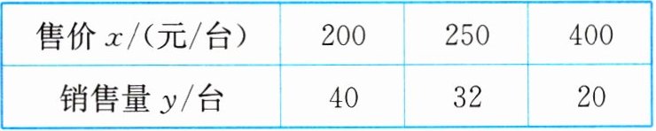 | 售价$x/$(元/台) | $200$ | $250$ | $400$ |