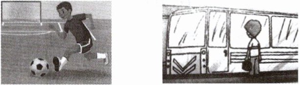 1. He’s a football player. He goes to work by bus.