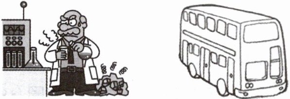 2. He’s a scientist. He goes to work by bus.