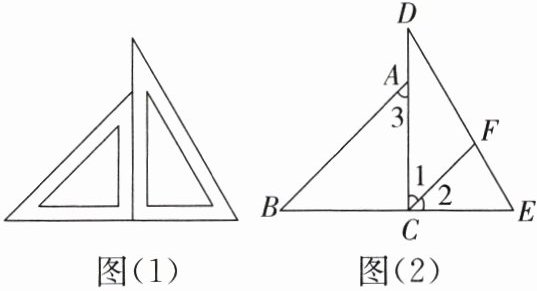 【例 2】 (教材题变式)将一副三角板拼成如图(1)所示的图形,示意图如图(2)所示,过点 C 作 CF 平分∠DCE 交 DE 于点 F.