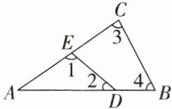 3. (2025·广安)如图所示,∠A= 35°,则∠1+∠2+∠3+∠4 的度数为______.
