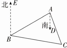 1. 由题意,AD为A处正南方向,BE为B处正北方向,故AD//BE。