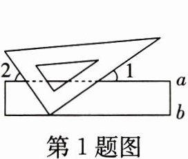 1. 如图所示,$ a $,$ b $ 是直尺的两边,$ a // b $,把三角板的直角顶点放在直尺的 $ b $ 边上,若 $ \angle 1 = 35^{\circ} $,则 $ \angle 2 $ 的度数是(