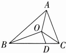 15. (教材题拓展)如图所示,在△ABC 中,O 是三个内角的平分线的交点,过点 O 作∠ODC = ∠AOC,OD 交边 BC 于点 D. 若∠ABC = n°,则∠BOD 的度数为(