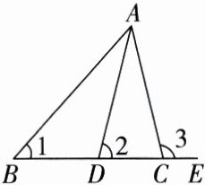 11. 如图所示,在△ABC 中,AD 平分∠BAC,则∠1,∠2,∠3 的数量关系为(