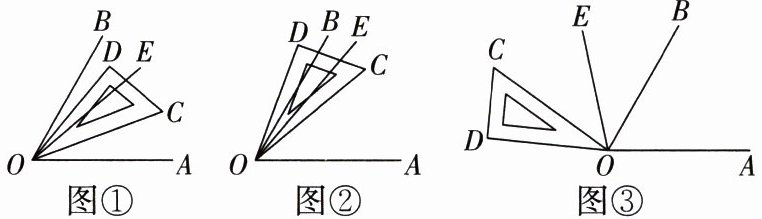 ;(3) 如图③所示,当$\angle AOC = \alpha(120^{\circ} < \alpha < 180^{\circ})$时,求$\angle DOE$的度数。