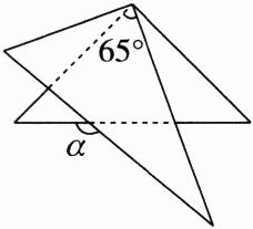 7. 如图所示,将分别含有$30^{\circ}$,$45^{\circ}$角的一副三角板重叠,使直角顶点重合,若两直角重叠形成的角为$65^{\circ}$,则图中$\angle \alpha$的度数为