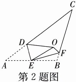 2. 如图所示,将$\triangle ABC沿DE$,$EF$翻折,顶点$A$,$B均落在点O$处,且$EA与EB重合于线段EO$,$\angle CDO + \angle CFO = 108^{\circ}$,则$\angle C$的度数为(